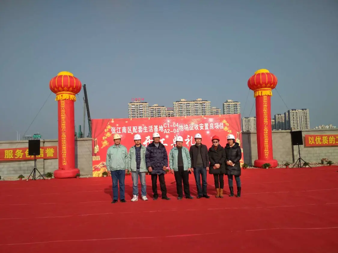 本工程于2017年12月26日舉行了開工典禮。本次開工典禮與會的有張江鎮(zhèn)政府領(lǐng)導(dǎo)、上海張江房地產(chǎn)有限公司領(lǐng)導(dǎo)及項(xiàng)目負(fù)責(zé)人、上海申昶房地產(chǎn)開發(fā)有限公司領(lǐng)導(dǎo)及項(xiàng)目負(fù)責(zé)人、上海百通項(xiàng)目管理咨詢有限公司領(lǐng)導(dǎo)及項(xiàng)目負(fù)責(zé)人,以及施工單位領(lǐng)導(dǎo)、項(xiàng)目負(fù)責(zé)人及其員工。在開工典禮上,鎮(zhèn)長代表鎮(zhèn)政府上臺致辭并對本項(xiàng)目的具體情況做了詳細(xì)介紹,對各參建單位提出了一些要求;之后各相關(guān)參建單位負(fù)責(zé)人相繼上臺作了發(fā)言;最后鎮(zhèn)黨委書記宣布A2-04和 C1-04地塊征收安置房工程正式開工。