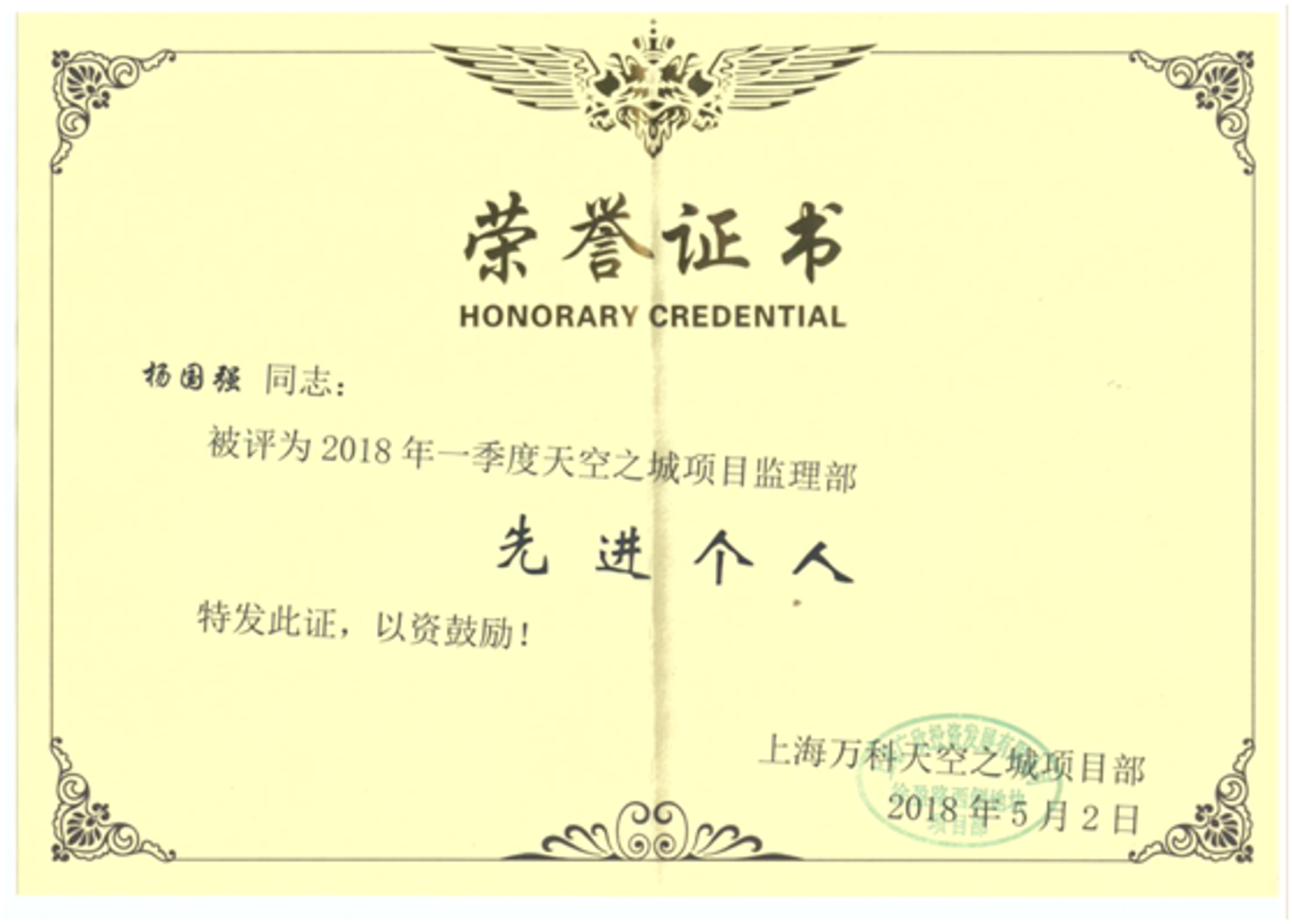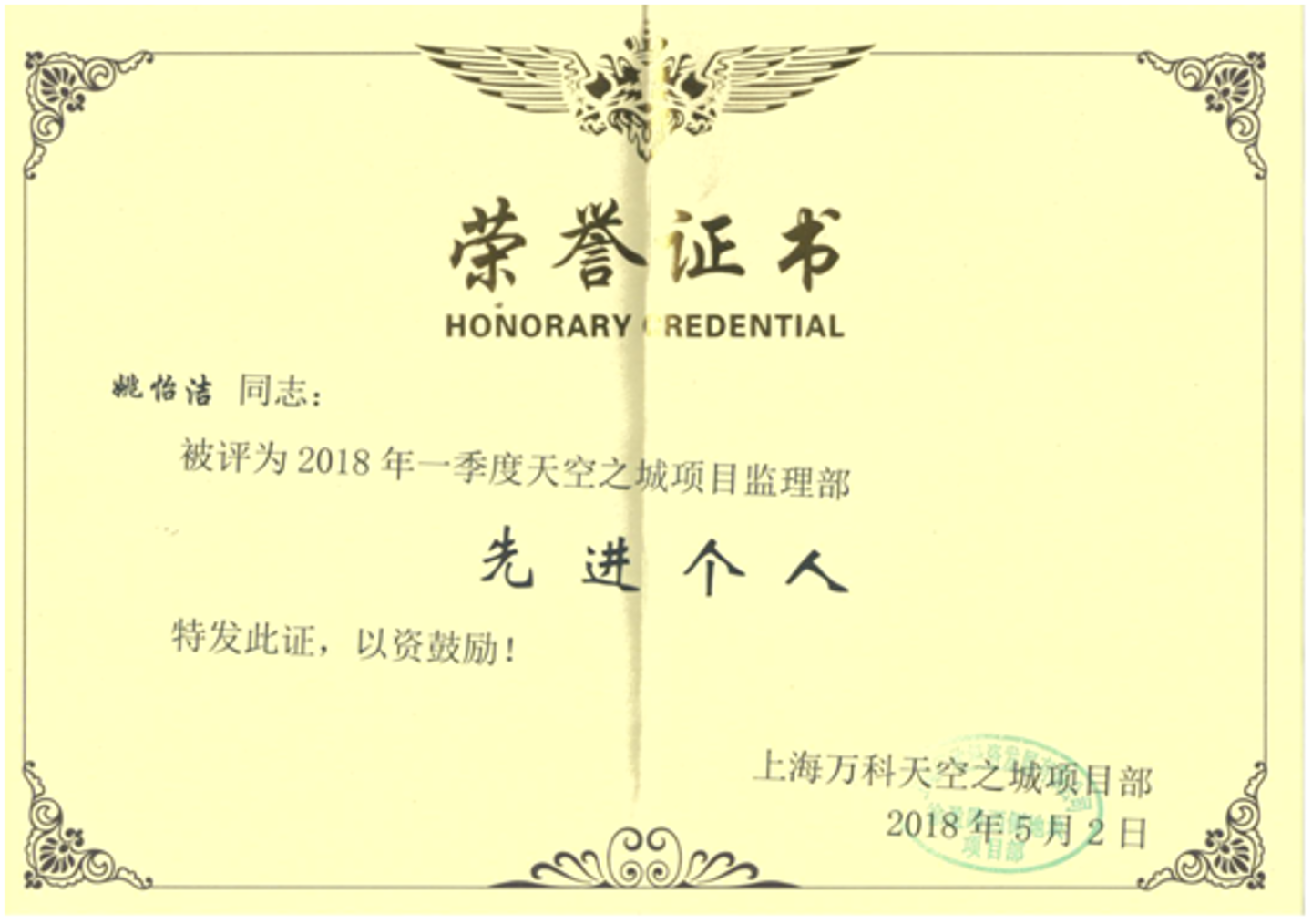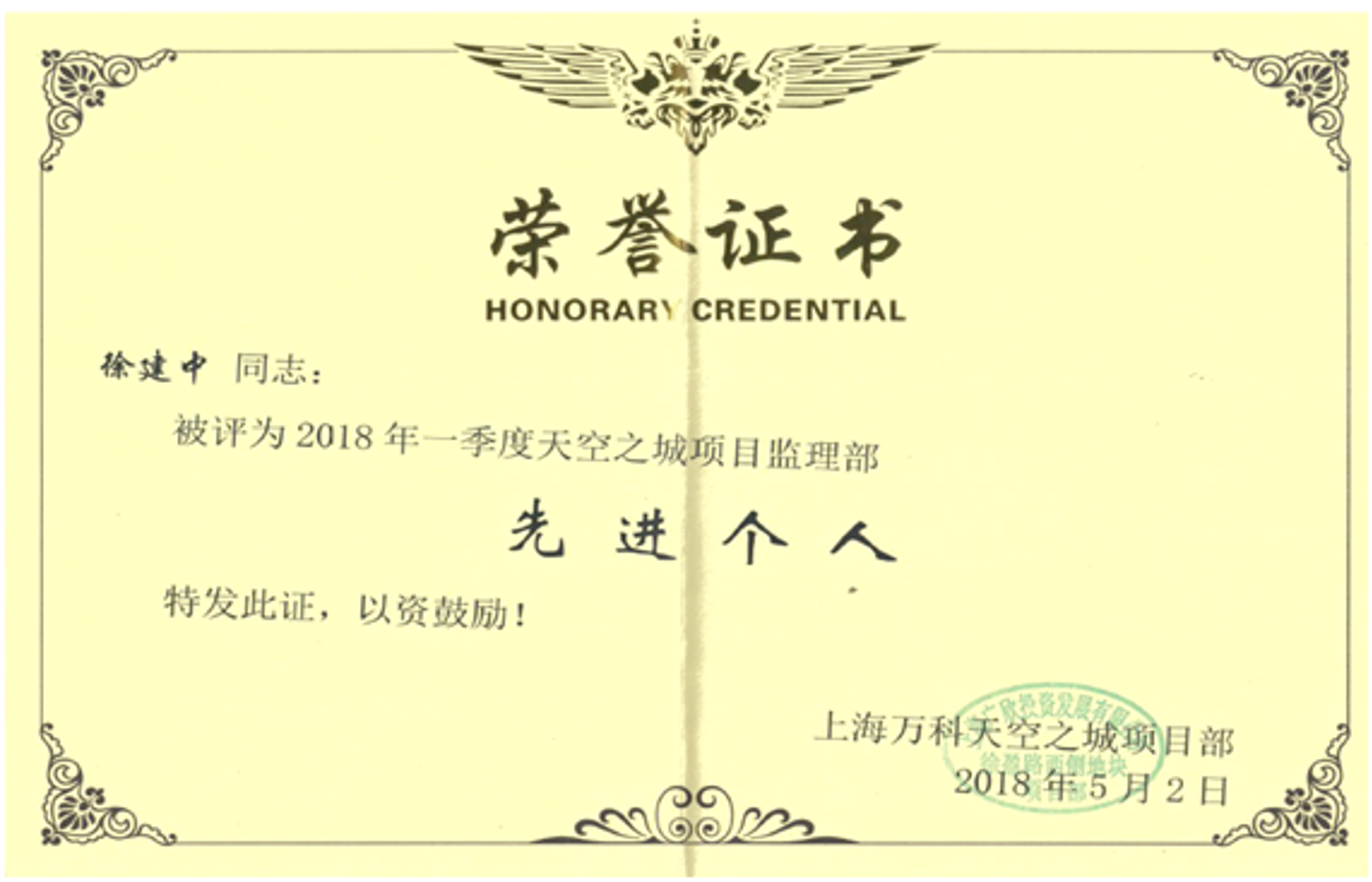 在2018年一季度飛檢中,百通監理組全體動員,對每棟樓進行承包式分工,責任到人,開展安全、質量風險,實測實量等各項檢查。飛檢期間,大家每天早上八點以前到達現場,加班加點,不計得失,發現問題及時協調處理,通過大家的努力和各方配合,經歷萬科一季度兩輪檢查,徐涇萬科項目獲得上海公司一季度飛檢第一名的好成績,為此業主對監理組徐建中、楊國強、沈金國、姚怡潔等四名同志進行嘉獎。