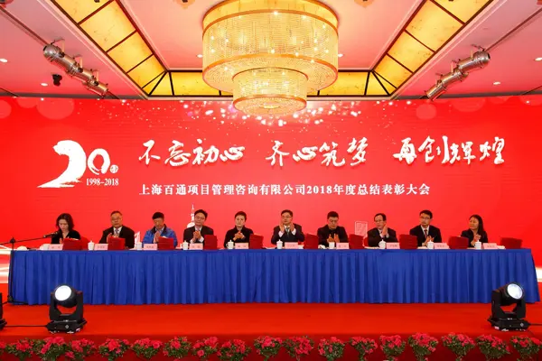 2019年1月20日下午,上海百通項目管理咨詢有限公司2018年度總結表彰大會在中油陽光大酒店隆重舉行。公司黨政班子領導及300余名員工共同參加大會。大會分兩項議程:一是由公司董事長、黨總支書記王大年作2018年度公司工作總結報告;二是由公司總經(jīng)理陶燕宣讀表彰名單,公司黨政班子向獲獎人員頒獎,獲獎者代表發(fā)言。