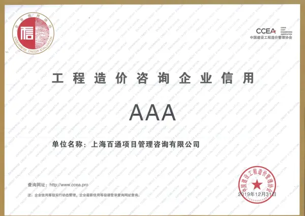 最終,經企業申報、各省工程造價管理協會初評、中價協組織專家終評等程序,我司順利通過評審,榮獲 “2019年度工程造價咨詢企業信用”AAA等級。