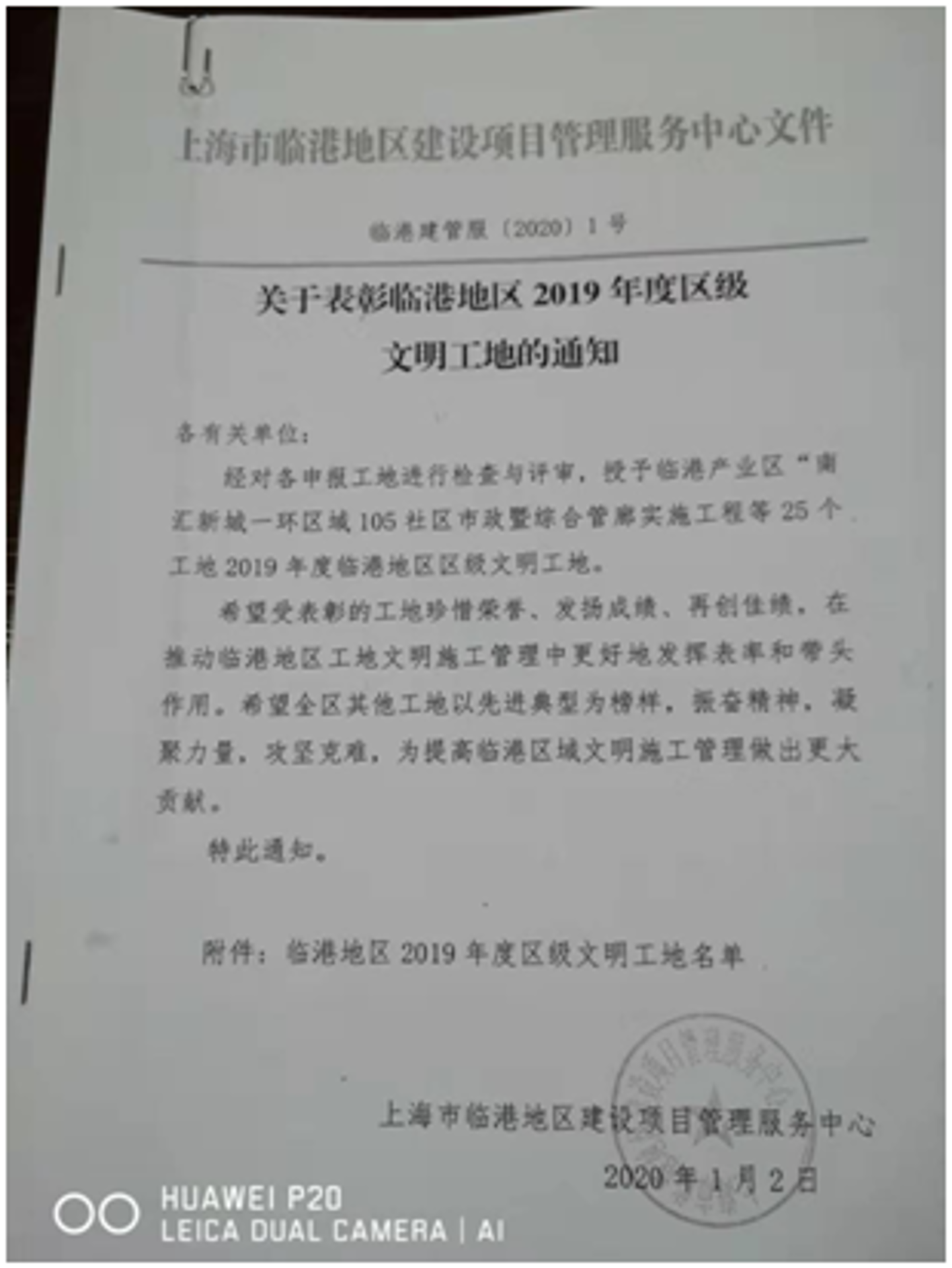 4、臨港先租后售園區租賃住宅二期裝修項目(二標):該項目監理機構,文明施工管理工作突出,項目在臨港地區安全文明施工檢查評比中,被授予2019年度臨港地區區級“文明工地”。