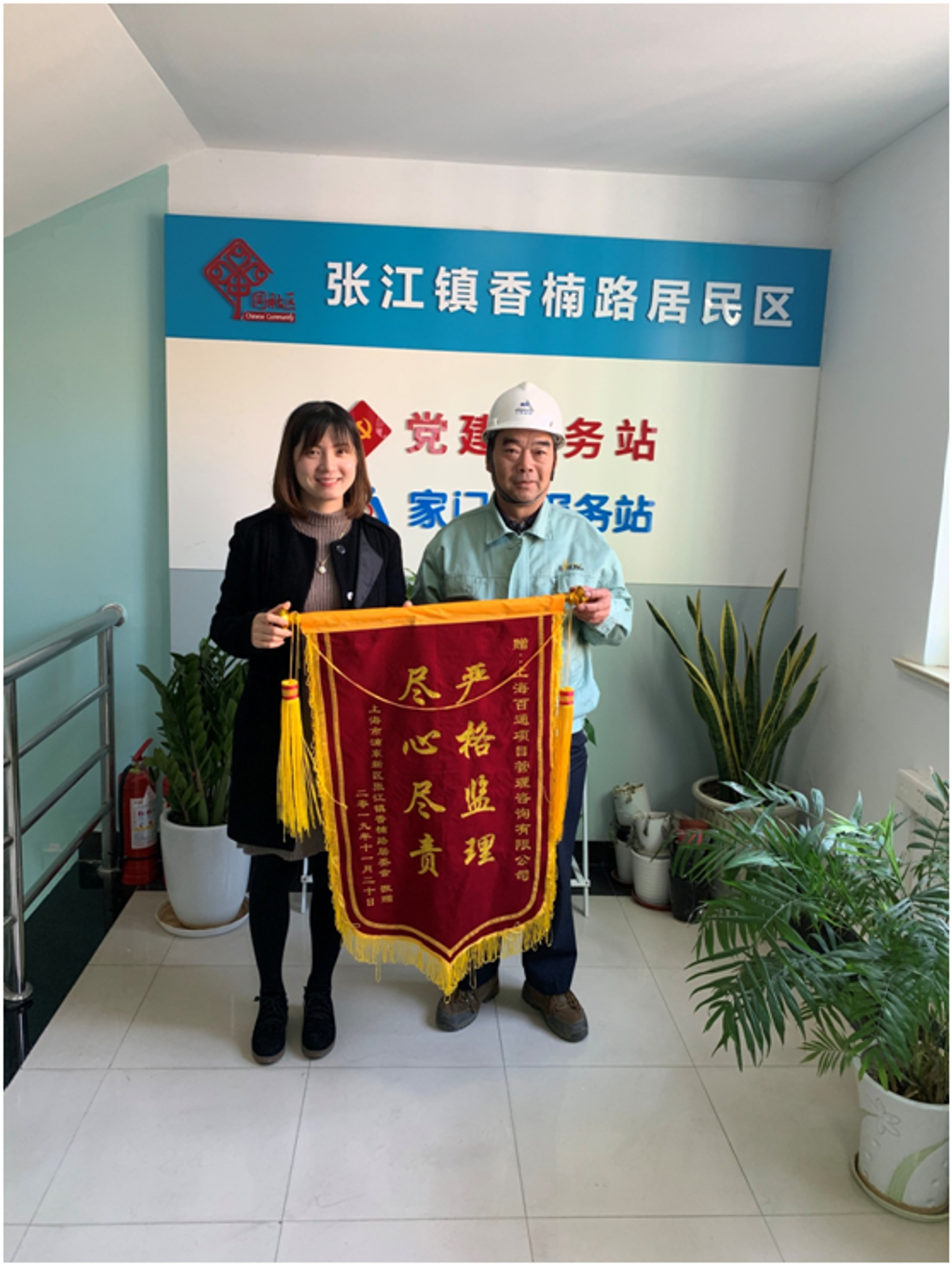 7、香楠居委活動場所裝修工程:該項目監理機構嚴格監理、盡心盡責,順利完成竣工驗收,得到張江鎮政府、張江香楠居委、物業及業委會的肯定,特贈錦旗以表感謝。