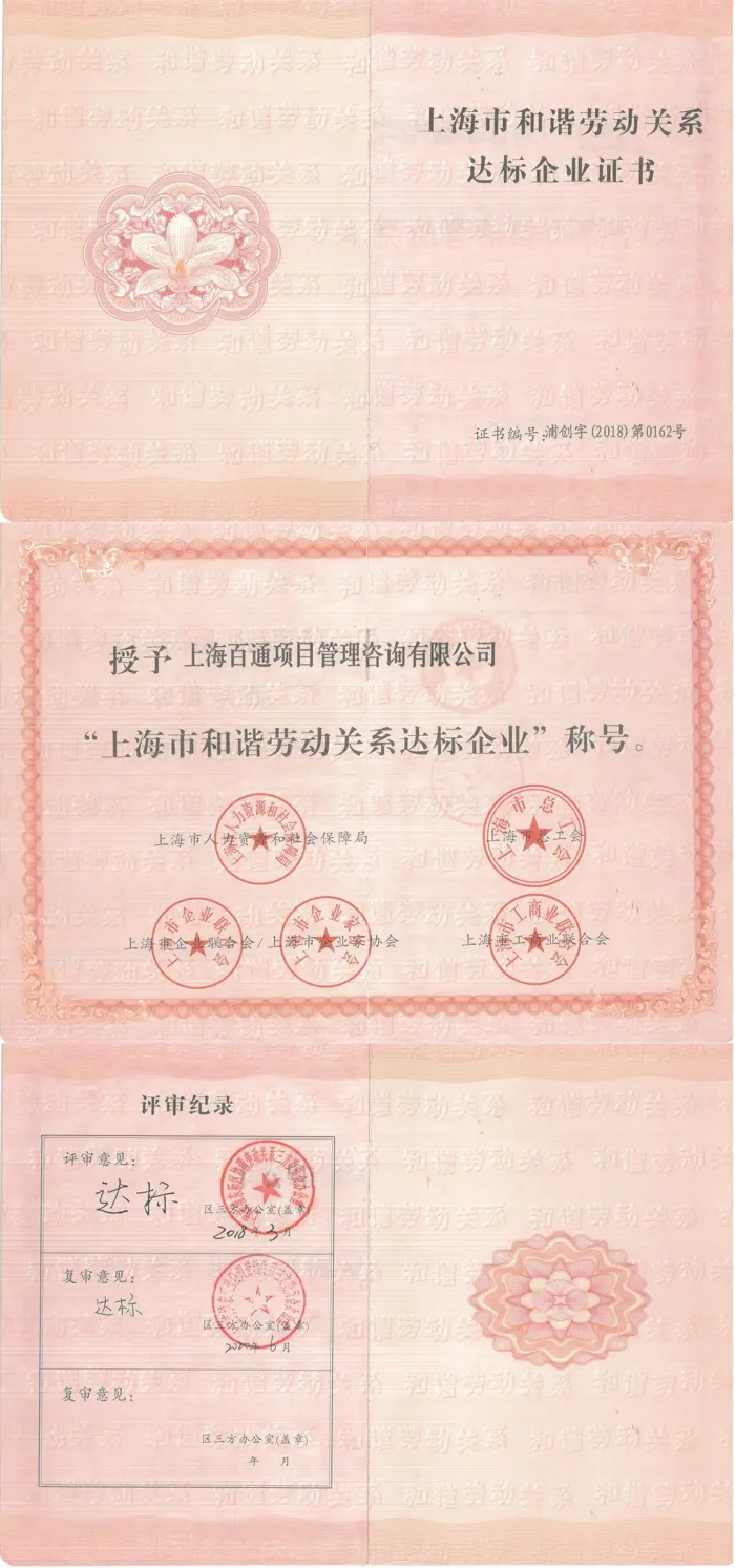 近日,經公司辦公室、工會牽頭組織,各業務板塊大力配合參與,我司成功續評“上海市和諧勞動關系達標企業”稱號。此稱號是由上海市人力資源和社會保障局、上海市總工會、上海市企業聯合會/上海市企業家協會、上海市工商業聯合會聯合授予的表彰榮譽,我司自2018年3月初評成功后,此次為復評成功達標。
