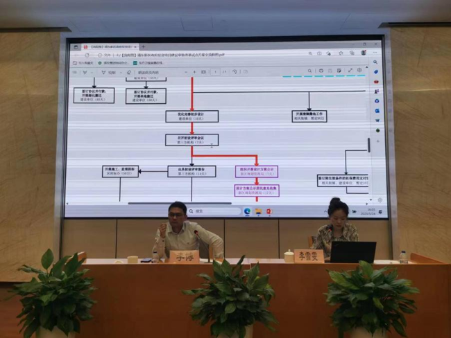 我司副總經理、高級工程師、注冊一級建造師、注冊監理工程師李博講授了《工程建設項目審批改革及案例分享》,我司代建板塊市場部經理李雪雯展示解讀了工程建設項目審批“一網通辦”具體實施流程。