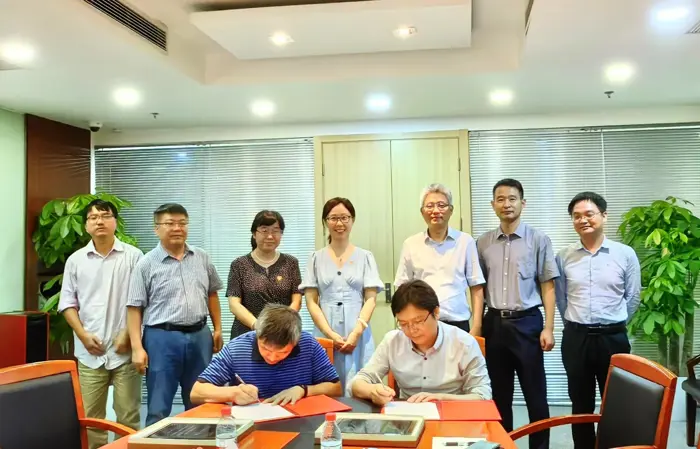 在隨后的會議中,雙方就黨建共建和校企合作的具體事項進行了深入的交流和溝通,表示高校和企業將充分利用各自的優質資源,共同推進校企共建。雙方在會上簽署了黨建共建協議,并舉行了“實習實踐共建基地”揭牌儀式。