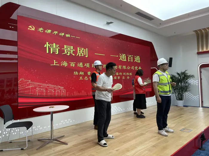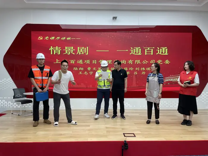 “七一”前夕,6月26日下午,上海百通項目管理咨詢有限公司黨委書記、副總經理顧超同志、黨群工作部、獲獎黨支部代表、獲獎黨員代表、“黨課開講啦”情景劇《一通百通》全體演職人員參加了浦東新區社會工作黨委直屬綜合黨委慶祝建黨103周年暨表彰活動。