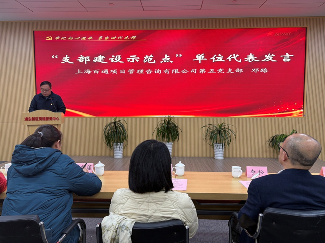 百通第五黨支部(代建板塊黨支部)榮獲“支部建設示范點(2025.01-2027.01)”榮譽稱號,支部委員鄧路同志代表獲獎單位交流發言;第二黨支部黨員虞明明同志、第六黨支部黨員鄒建文同志榮獲“黨員先鋒崗”榮譽稱號。