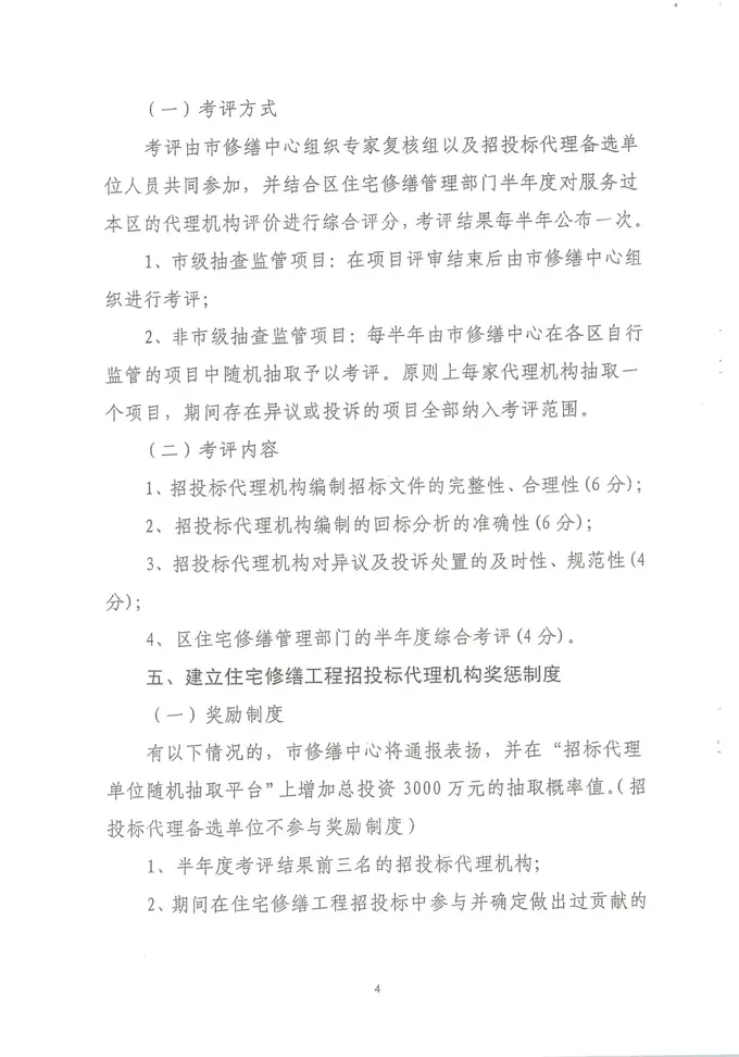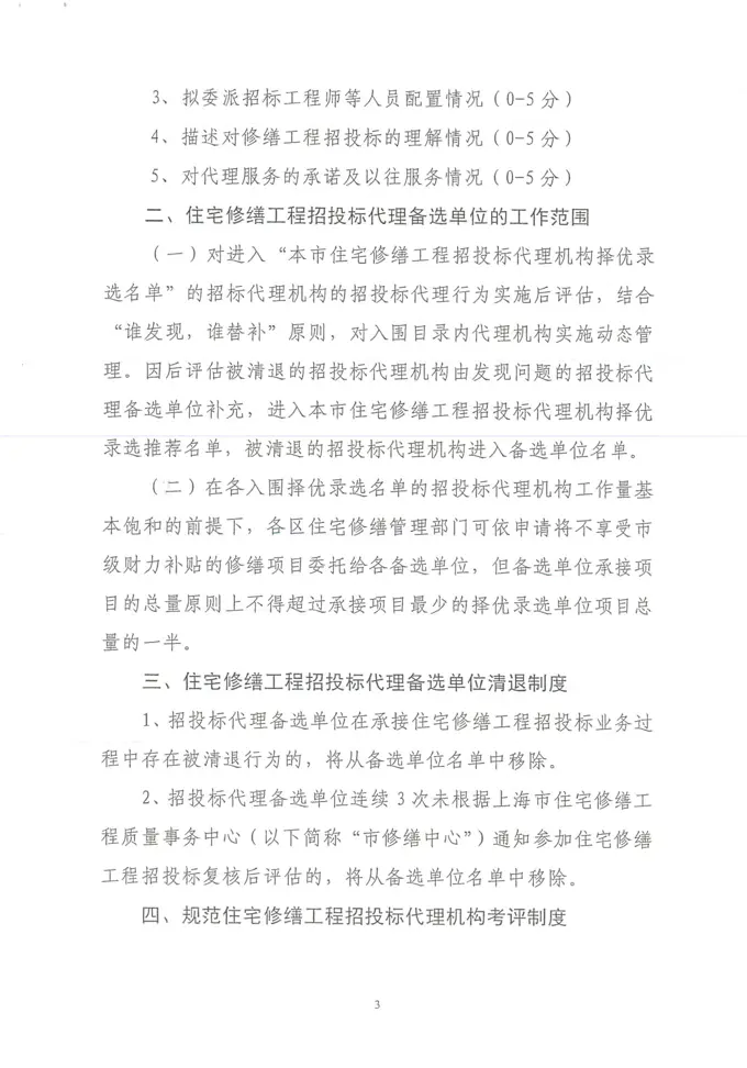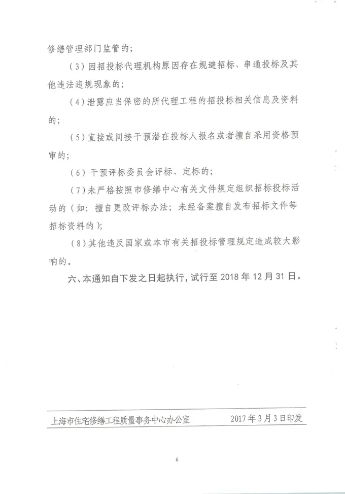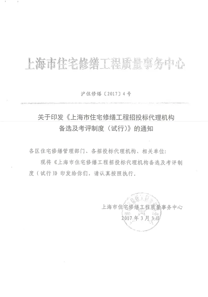 关于引发《上海市住宅修缮工程招投标代理机构备选及考评制度(试行)》的通知(沪住修缮[2017]4号)