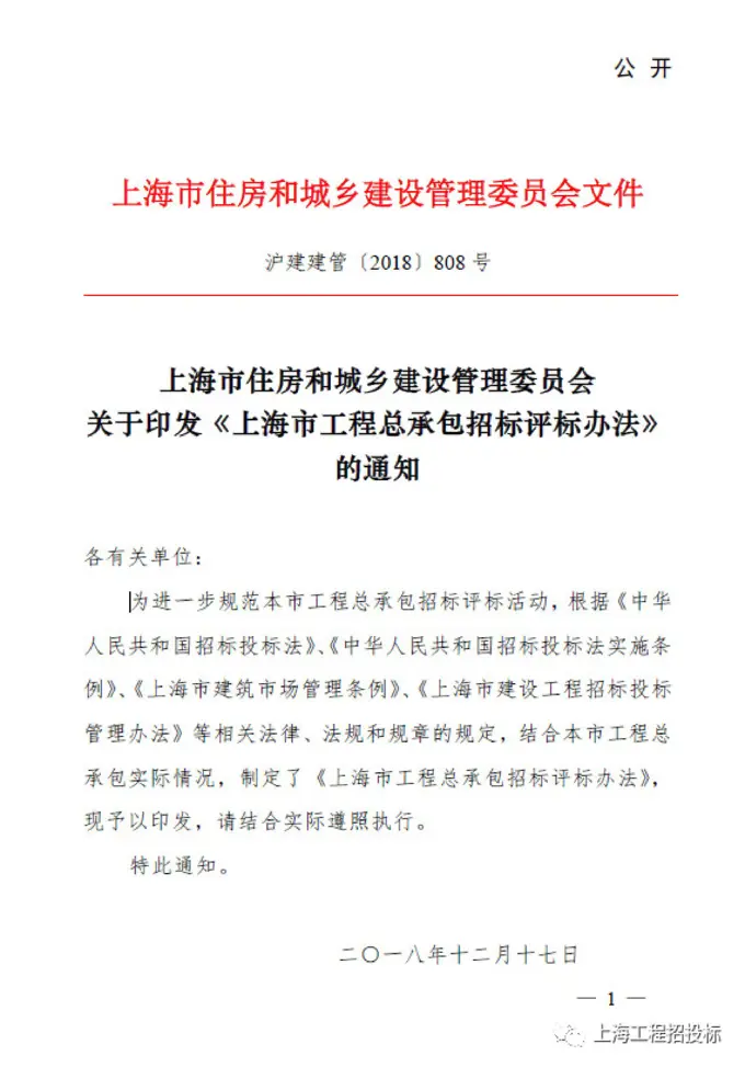 上海市工程总承包招标评标办法 (沪建建管[2018]808号)
