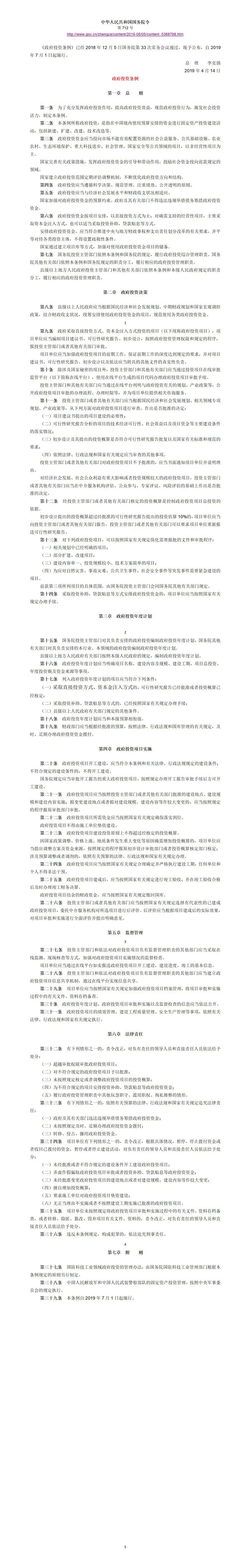《政府投资条例》【国务院令第712号】