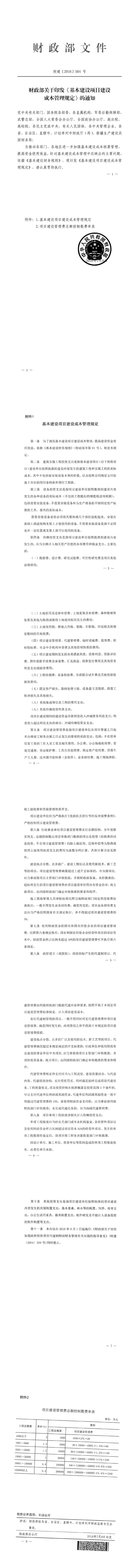 [财政部]关于印发《基本建设项目建设成本管理规定》的通知【财建〔2016〕504号】
