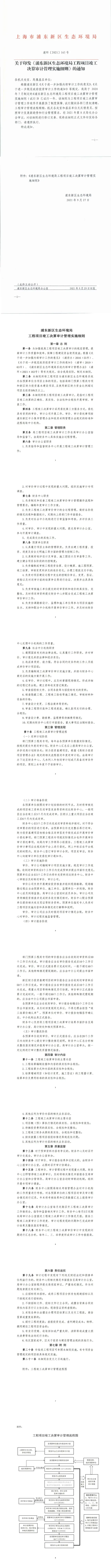 关于印发《浦东新区生态环境局工程项目竣工决算审计管理实施细则》的通知【浦环〔2021〕165号】